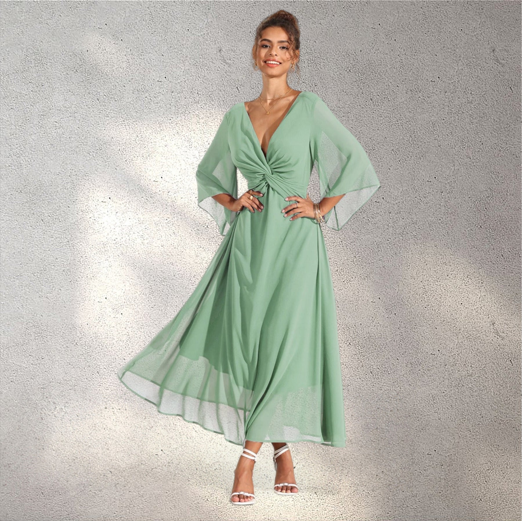 ALINA | Eleganta gara kleita ar V veida izgriezumu
