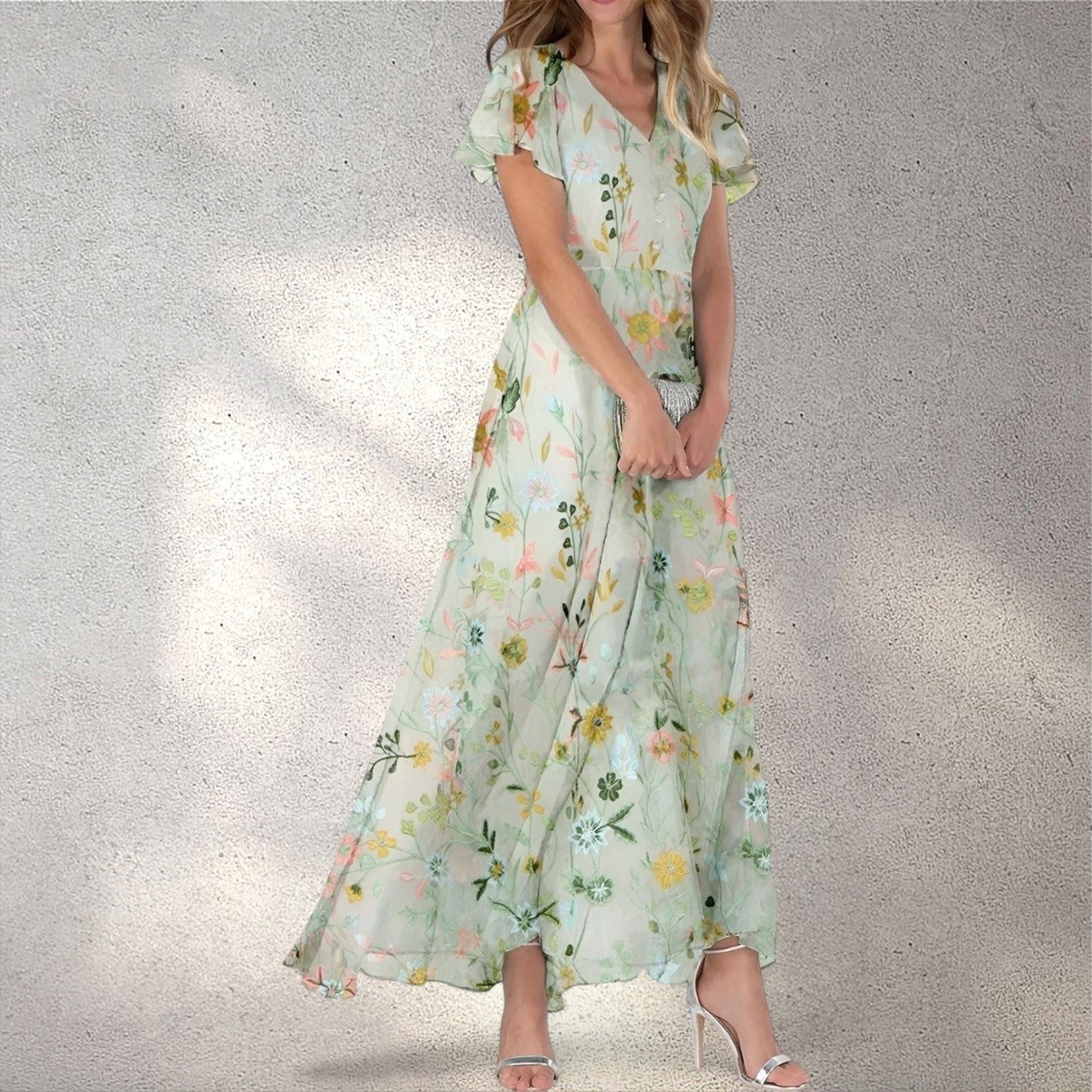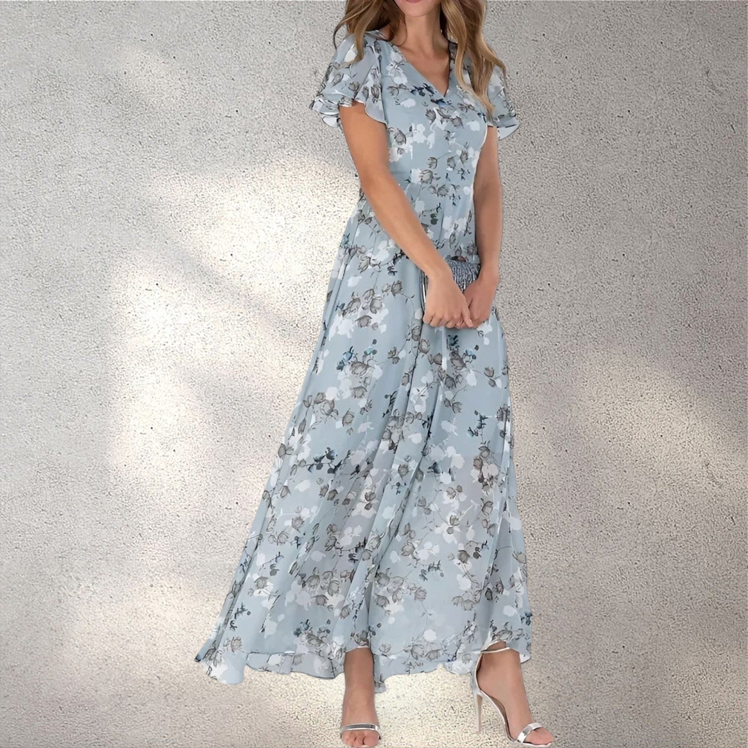 Alma vasaras kleita ir ideāls apģērbs, kas izstaro vieglumu un sievišķību. Ar tauriņu piedurknēm un maigu ziedu rakstu, šī kleita radīs sapņainu izskatu, kas ir ideāli piemērots siltām dienām un vasaras svinībām.