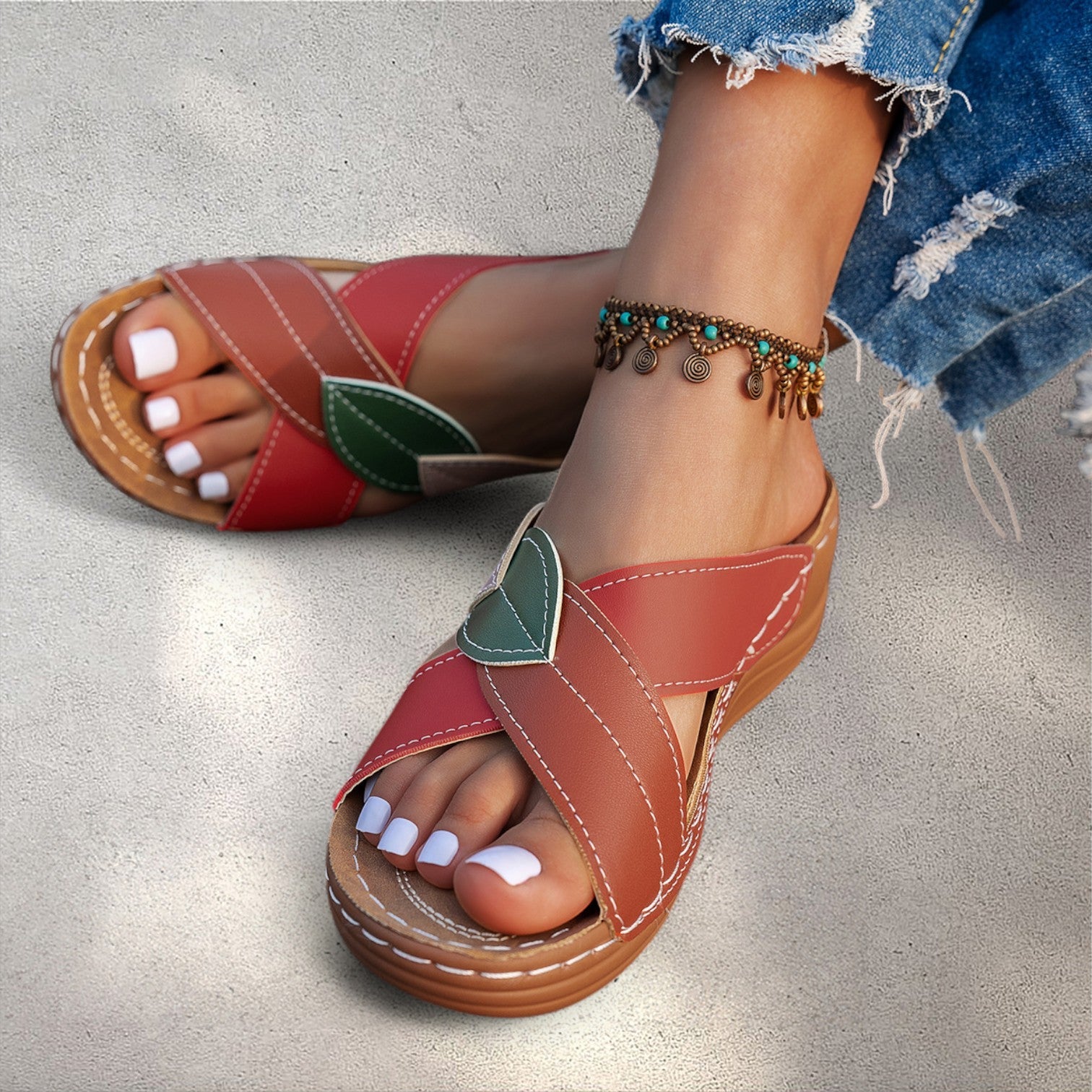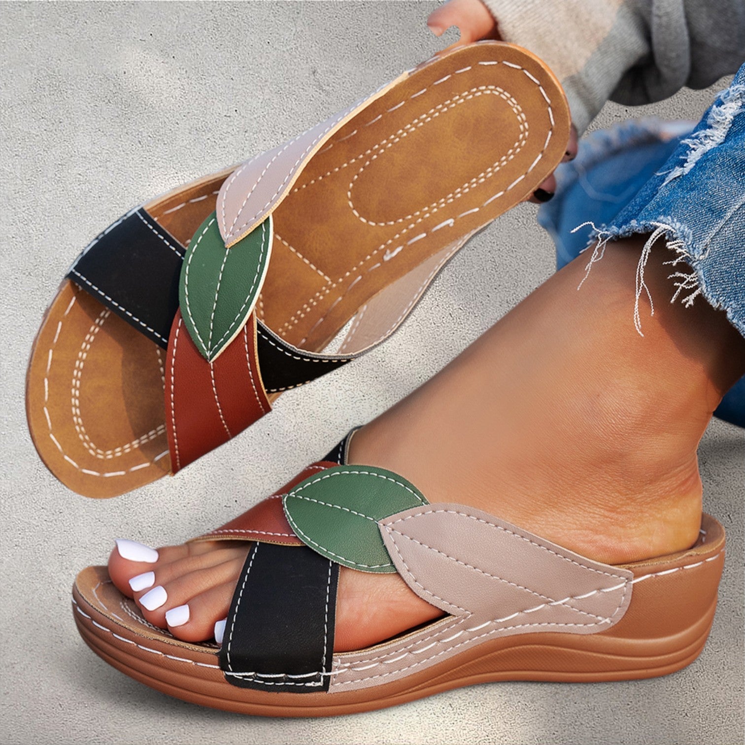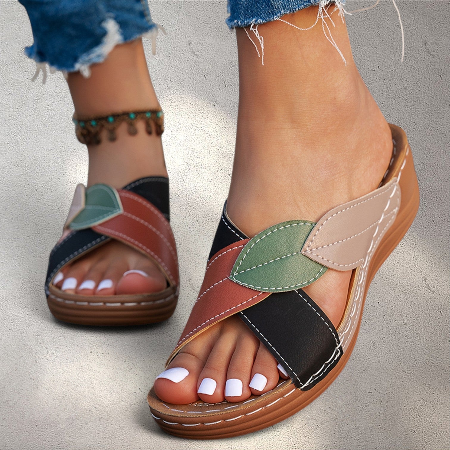 - Vasarīga un unikāla dizaina apdare: Krāsainā izskata dēļ šīs čības ne tikai ir ērtas, bet arī piešķir jūsu stilam īpašu šarmu.